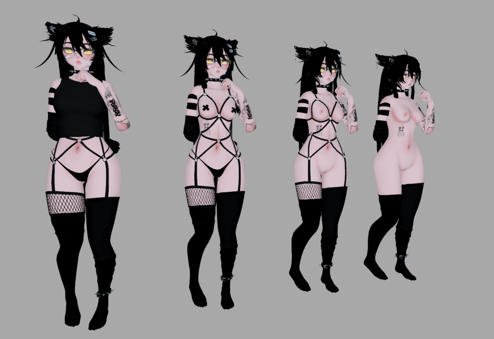 - Toggles for Jumper, Top, Panties, Harness, Pasties and Glasses